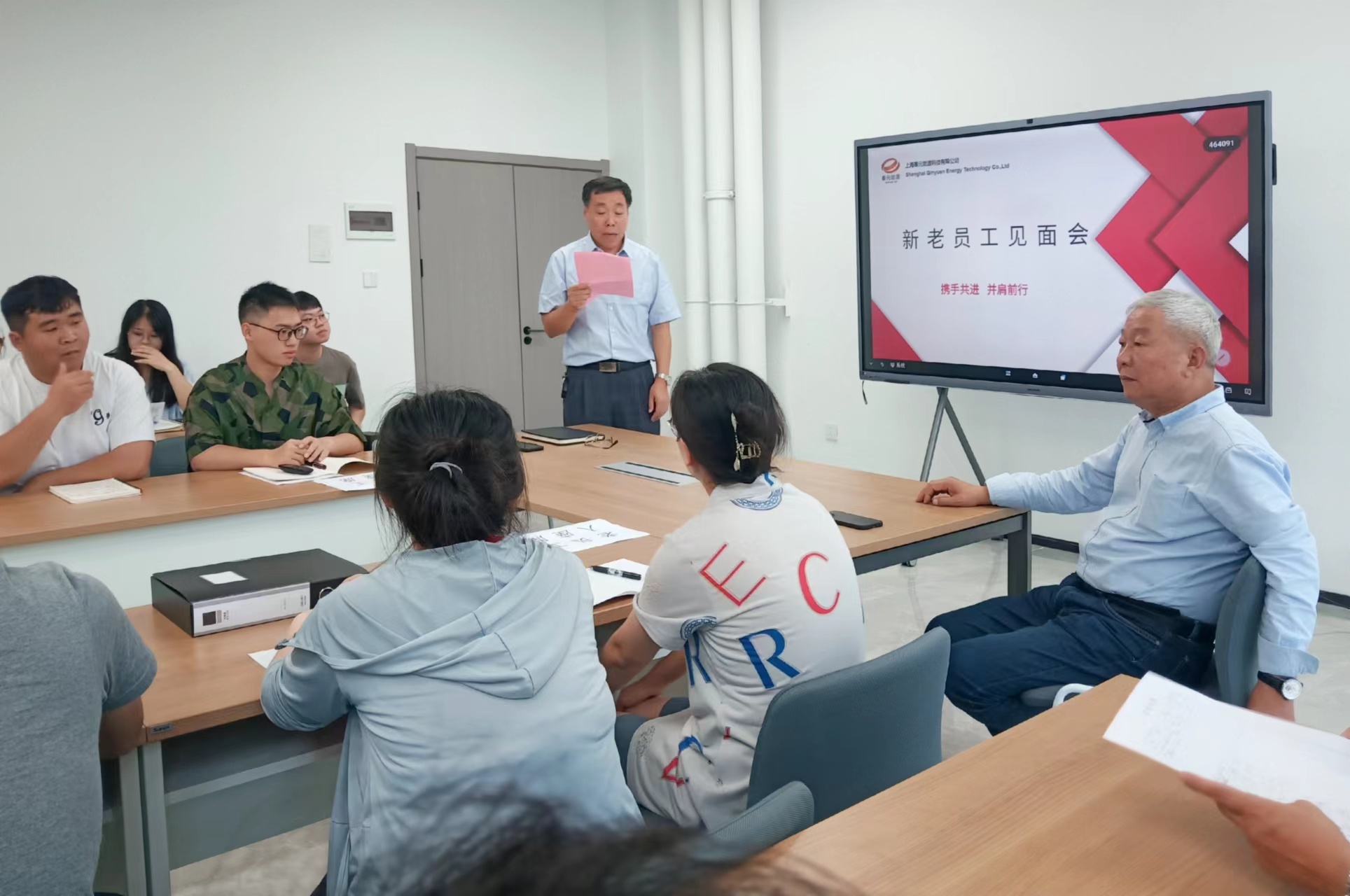 來源:秦元能源科技 日期2023-07-27 13:43:24仲夏時節(jié),芬芳絢爛。7 月 25 日,秦元能源科技有限公司2023 屆新員工見面會在浙江海鹽新基地召開。會議由副總經(jīng)理鐘武平主持,公司各領導以及全體新老員工出席見面會。